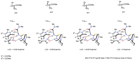 Transition states formed by the E- isomer of nitroacrylate 3a.