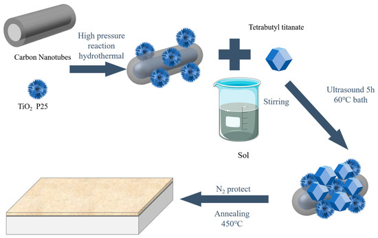- Xiang, J.; Wang, S.C.; Cao, Y.X.; Fang, L.N.; Ke, W.; Guo, H.; Duan, B.Y.; Yu, W.H.; Li, L.; Zhao, Z.L. One-Step Preparation of High Performance TiO2/CNT/CQD Nanocomposites Bactericidal Coating with Ultrasonic Radiation. Coatings 2023, 13, 145. [Google Scholar] [CrossRef]