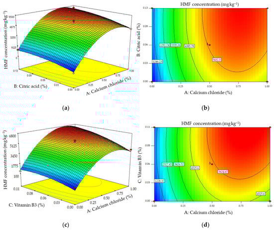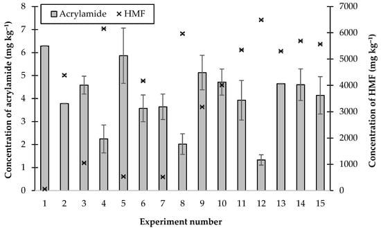 2.2. The Effects of Combinations of Additives on the Formation of Acrylamide and HMF