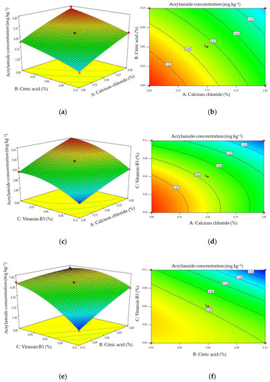 3.3. The Effects of Additives on Acrylamide Formation