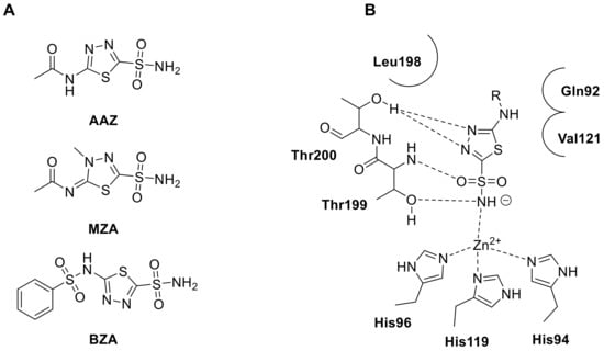 - Jiang, C.; Shi, J.; Liao, L.; Zhang, L.; Liu, J.; Wang, Y.; Lao, Y.; Zhang, J. 5-[2-(N-(Substituted phenyl)acetamide)]amino-1,3,4-thiadiazole-2-sulfonamides as selective carbonic anhydrase II Inhibitors with neuroprotective effects. ChemMedChem 2020, 15, 705–715. [Google Scholar] [CrossRef]