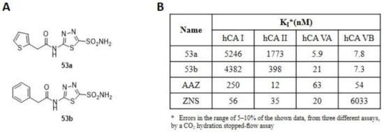- Carta, F.; Birkmann, A.; Pfaff, T.; Buschmann, H.; Schwab, W.; Zimmermann, H.; Maresca, A.; Supuran, C.T. Lead development of thiazolylsulfonamides with carbonic anhydrase inhibitory action. J. Med. Chem. 2017, 60, 3154–3164. [Google Scholar] [CrossRef]