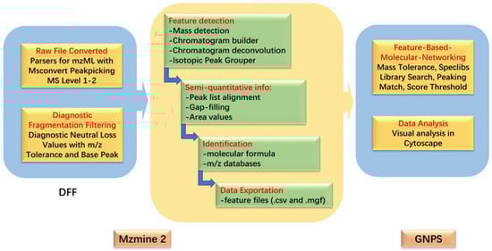 - Nothias, L.F.; Petras, D.; Schmid, R.; Kai, D.; Dorrestein, P.C. Feature-based molecular networking in the GNPS analysis environment. Nat. Methods 2020, 17, 905–908. [Google Scholar] [CrossRef]