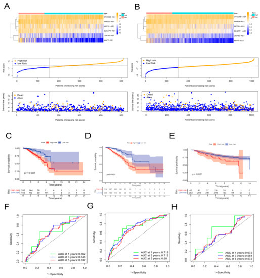- Liu, G.-M.; Zeng, H.-D.; Zhang, C.-Y.; Xu, J.-W. Identification of a six-gene signature predicting overall survival for hepatocellular carcinoma. Cancer Cell Int. 2019, 19, 138. [Google Scholar] [CrossRef]