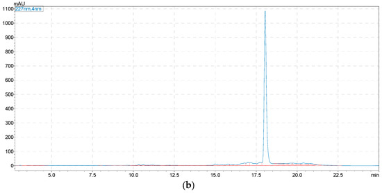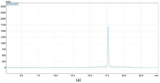 The HPLC experiment was conducted using a Shimadzu LC-20AT (Tokyo, Japan) and a Shimadzu Shim-pack GIST C18 (250 × 4.6 mm, 5 µm, Shimadzu, Japan) at a flow rate of 1.0 mL/min. The detection wavelength was 227 nm and the column temperature was 30 °C. The mobile phase was a mixture of ACN (A)-water (B) with a gradient elution program as follows: 0–30 min, 5−95% A. The sample injection volume was 10 μL.