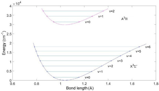 - Huber, K.P.; Herzberg, G. Molecular Spectra and Molecular Structure IV. Constants of Diatomic Molecules; National Research Council of Canada, Litton Educational Publishing: New York, NY, USA, 1979. [Google Scholar]
