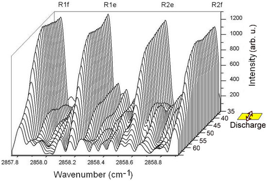 - Hempel, F.; Röpcke, J.; Pipa, A.; Davies, P.B. Infrared laser spectroscopy of the CN free radical in a methane-nitrogen-hydrogen plasma. Mol. Phys. 2003, 101, 589–594. [Google Scholar] [CrossRef]