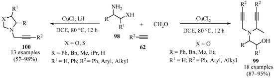 Cu-Catalyzed/Mn-mediated chemo-selective synthesis of homopropargyl alcohols 32.