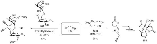 - Hua, R.; Nizami, T.A. Synthesis of heterocycles by using propargyl compounds as versatile synthons. Mini-Rev. Org. Chem. 2018, 15, 198–207. [Google Scholar] [CrossRef]