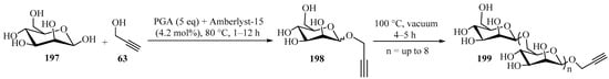 - Spitzer, L.; Lecommandoux, S.; Cramail, H.; Jérôme, F. Sequential acid-catalyzed alkyl glycosylation and oligomerization of unprotected carbohydrates. Green Chem. 2021, 23, 1361–1369. [Google Scholar] [CrossRef]