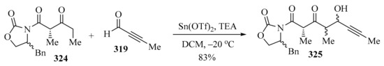 - Evans, D.A.; Ng, H.P.; Clark, J.S.; Rieger, D.L. Diastereoselective anti aldol reactions of chiral ethyl ketones. Enantioselective processes for the synthesis of polypropionate natural products. Tetrahedron 1992, 48, 2127–2142. [Google Scholar] [CrossRef]