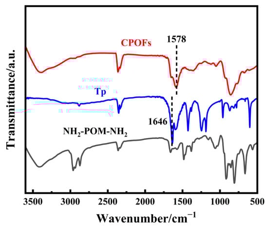 FT-IR spectra of NH2-POM-NH2, Tp and CPOFs.