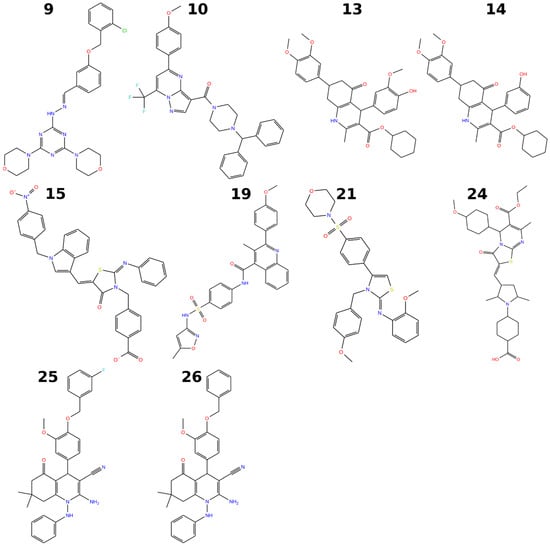 - Gaulton, A.; Bellis, L.J.; Bento, A.P.; Chambers, J.; Davies, M.; Hersey, A.; Light, Y.; McGlinchey, S.; Michalovich, D.; Al-Lazikani, B.; et al. ChEMBL: A large-scale bioactivity database for drug discovery. Nucleic Acids Res. 2012, 40, D1100–D1107. [Google Scholar] [CrossRef]