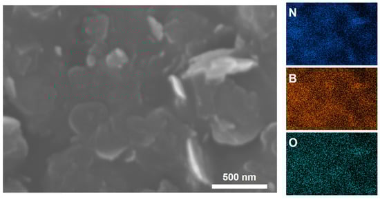 EDS mapping of N, B and O elements in BNNSs-OH@500.