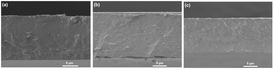 Cross-section SEM images of (a) PVA/BNNSs, (b) PVA/BNNSs-OH, and (c) cPVA/BNNSs-OH nanocomposites.