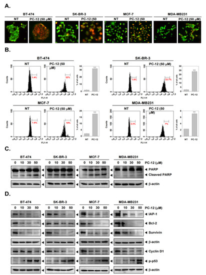 2.3. PC-12 Induces Apoptosis in Human Breast Cancer Cells