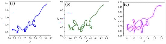 In order to further analyze the dielectric loss mechanism, the Debye relaxation was analyzed by the Cole–Cole curve, as shown in Figure 9. Debye relaxation is an important loss mechanism for the dielectric loss of absorbers. In Cole–Cole curves, each semicircle represents a polarization relaxation process. It is seen that each Cole–Cole curve exhibits several obvious semicircles, which also present serious distortion, indicating that the polarization effect plays a leading role in the dielectric loss.