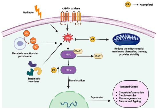 Antioxidant mechanisms of action of kaempferol []. Created using BioRender.com (accessed on 10 April 2023).
