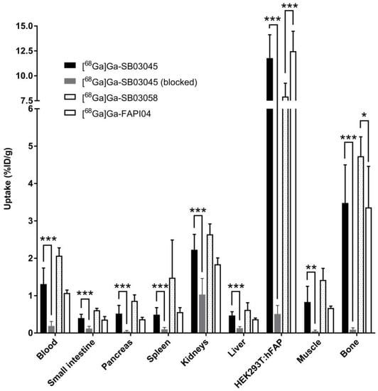 - Loktev, A.; Lindner, T.; Burger, E.-M.; Altmann, A.; Giesel, F.; Kratochwil, C.; Debus, J.; Marmé, F.; Jäger, D.; Mier, W.; et al. Development of Fibroblast Activation Protein–Targeted Radiotracers with Improved Tumor Retention. J. Nucl. Med. 2019, 60, 1421–1429. [Google Scholar] [CrossRef]