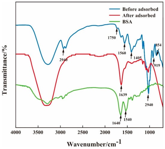 Changes of FT-IR before and after adsorption of BSA on the membrane.