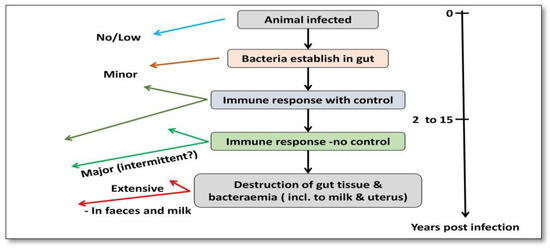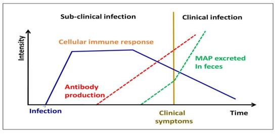 Different stages of MAP infection in domestic livestock.