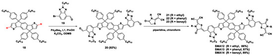 Synthetic routes of SMA12–SMA14 involved Pd2dba3-catalyzed direct arylation coupling reaction [40].