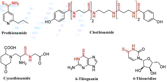 Representative pharmaceuticals or natural products containing a thioamide scaffold.