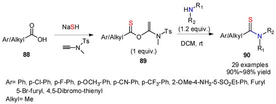 Thiol-mediated synthesis of aryl or alkyl thioamides by Takemoto’s group [30].