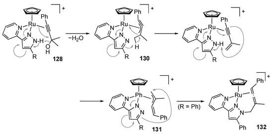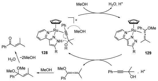 - Tashima, N.; Ohta, S.; Kuwata, S. Metal–Ligand Cooperative C–O Bond Cleavage of Propargylic Alcohol with Protic Pyrazole Complexes of Ruthenium. Faraday Discuss. 2019, 220, 364–375. [Google Scholar] [CrossRef] [PubMed]