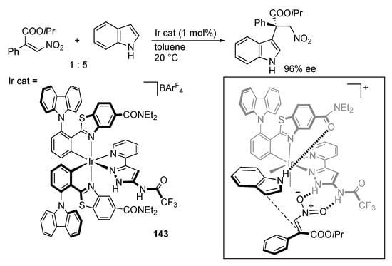 - Chen, L.-A.; Tang, X.; Xi, J.; Xu, W.; Gong, L.; Meggers, E. Chiral-at-Metal Octahedral Iridium Catalyst for the Asymmetric Construction of an All-Carbon Quaternary Stereocenter. Angew. Chem. Int. Ed. 2013, 52, 14021–14025. [Google Scholar] [CrossRef]