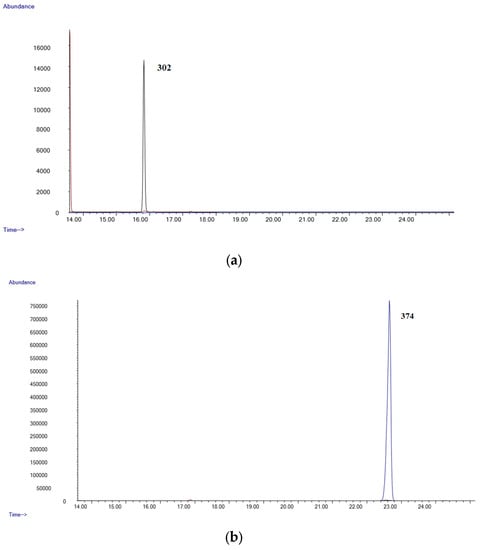 (a) Chromatogram of a blank blood sample (Δ9-THC); (b) chromatogram of a blank blood sample (Δ9-THC-COOH).