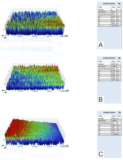 4.2. Contact Angle and Surface Roughness Measurements
