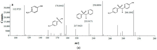 In order to explore the degradation pathway of SND during the degradation of SND by PEF/PMS, the reaction intermediates were detected by HPLC-MS/MS.