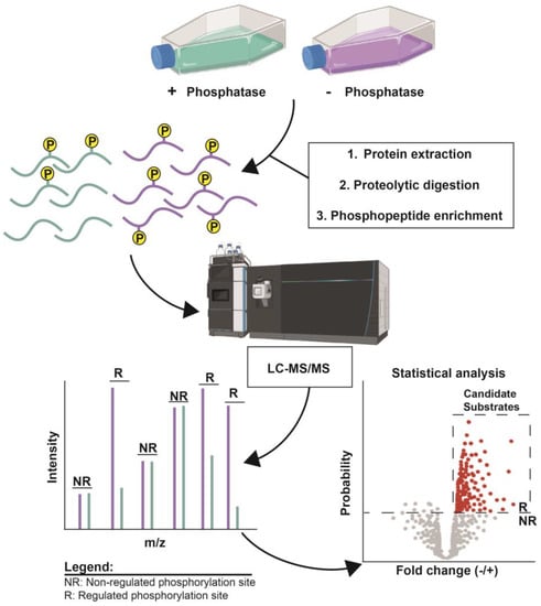 - Kokot, T.; Hoermann, B.; Helm, D.; Chojnacki, J.E.; Savitski, M.M.; Köhn, M. PLDMS: Phosphopeptide Library Dephosphorylation Followed by Mass Spectrometry Analysis to Determine the Specificity of Phosphatases for Dephosphorylation Site Sequences. In Computational Methods for Predicting Post-Translational Modification Sites; Kc, D.B., Ed.; Springer: New York, NY, USA, 2022; pp. 43–64. [Google Scholar]