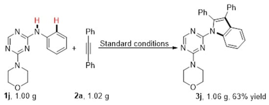 Gram-scale synthesis of N-(2-triazine) indole 3j.