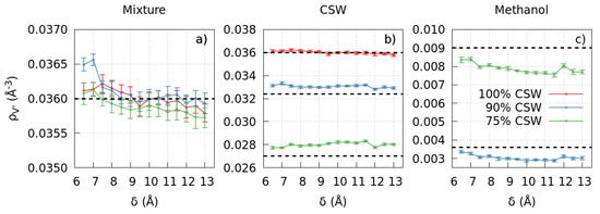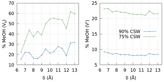 - Soetens, J.C.; Bopp, P.A. Water–Methanol Mixtures: Simulations of Mixing Properties over the Entire Range of Mole Fractions. J. Phys. Chem. B 2015, 119, 8593–8599. [Google Scholar] [CrossRef]