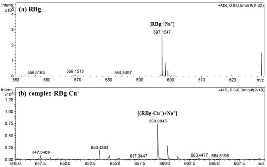 HRMS analysis of (a) RBg and (b) complex RBg–Cu+.