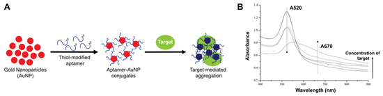 182. Melikishvili, S.; Piovarci, I.; Hianik, T. Advances in Colorimetric Assay Based on AuNPs Modified by Proteins and Nucleic Acid Aptamers. Chemosensors 2021, 9, 281. [Google Scholar] [CrossRef]