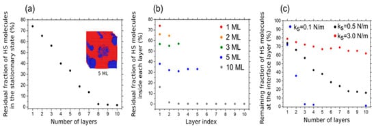 Layer by layer deposition is one of the methods used to fabricate SCO thin films with highly controlled thicknesses in the range of a nanometer [150]. This method was utilized for fabricating heterostructured SCO thin films that contained a well-defined buffer layer between the metallic substrates and SCO molecules. The result was a dramatic change in the SCO transition temperature [136]. The film thickness of crystalline ultrathin films of the SCO [Fe(py)2[Pt(CN)4] fabricated by the layer-by-layer method significantly affects the spin transition of the molecule [151]. For ultra-thin films below 10 nm, the functionality of the SCO complex is harshly affected, however for samples with thicknesses higher than 10 nm a similar behavior as a bulk complex is noticed. This can be due to an enhancement in cooperativity between molecules as a result of interparticle interactions. However, for films below 10 nm, SCO molecules become locked in the HS state as crystallites surrounded by Fe centers are partially separated [149,151]. STM images that compared to the deposition by sublimation revealed that the electrospray ionization deposition thin film preparation method of [Fe(pap)2]+ results in a significantly higher proportion of intact molecules on the Au(111) surface [77].
