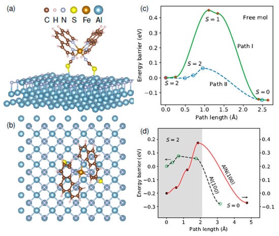 - Zhang, Y. Fe(phen)2(NCS)2 on Al(100): Influence of AlN Layer on spin crossover barrier. Phys. Chem. Chem. Phys. 2021, 23, 23758–23767. [Google Scholar] [CrossRef]