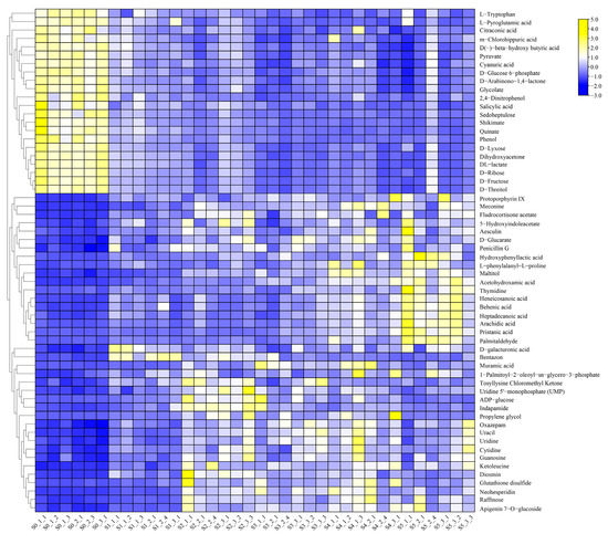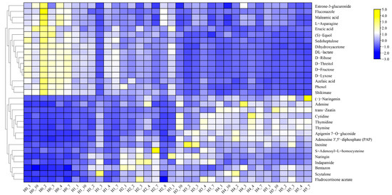 Cluster analysis of identified differential metabolites from DHS.