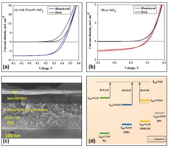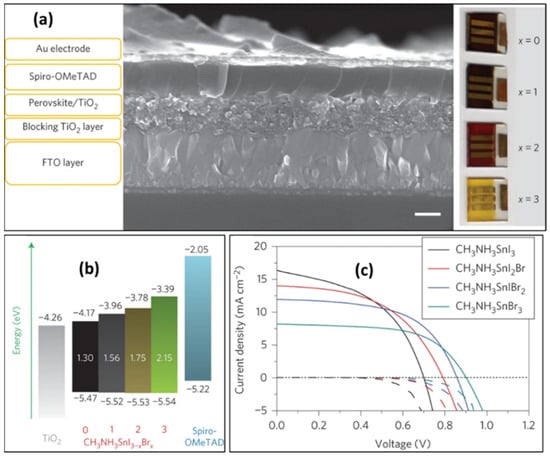 - Gupta, S.; Bendikov, T.; Hodes, G.; Cahen, D. CsSnBr3, A Lead-Free Halide Perovskite for Long-Term Solar Cell Application: Insights on SnF2 Addition. ACS Energy Lett. 2016, 1, 1028–1033. [Google Scholar] [CrossRef]