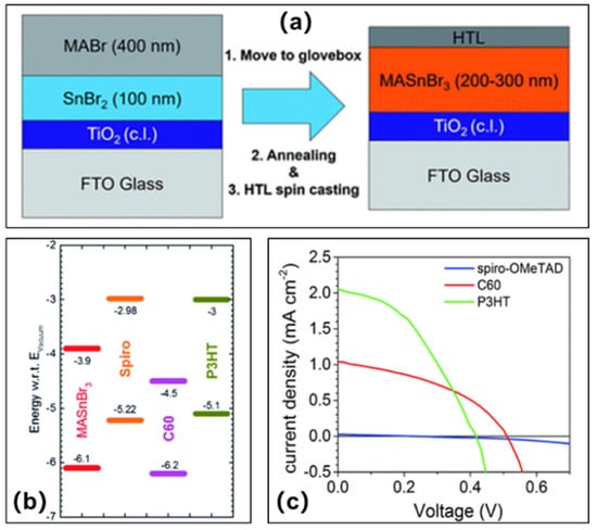 - Wang, N.; Zhou, Y.Y.; Ju, M.G.; Garces, H.F.; Ding, T.; Pang, S.P.; Zeng, X.C.; Padture, N.P.; Sun, X.W. Heterojunction-Depleted Lead-Free Perovskite Solar Cells with Coarse-Grained B-gamma-CsSnI3 Thin Films. Adv. Energy Mater. 2016, 6, 1601130. [Google Scholar] [CrossRef]