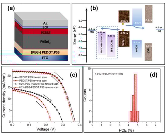 - Zuo, C.; Ding, L. Modified PEDOT Layer Makes a 1.52 V Voc for Perovskite/PCBM Solar Cells. Adv. Energy Mater. 2017, 7, 1601193. [Google Scholar] [CrossRef]