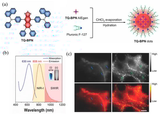 - Qi, J.; Sun, C.; Zebibula, A.; Zhang, H.; Kwok, R.T.; Zhao, X.; Xi, W.; Lam, J.W.; Qian, J.; Tang, B.Z. Real-time and high-resolution bioimaging with bright aggregation-induced emission dots in short-wave infrared region. Adv. Mater. 2018, 30, 1706856. [Google Scholar] [CrossRef] [PubMed]