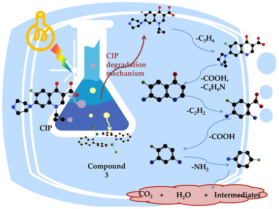 The degradation mechanism of CIP (using compound 3 as an example).