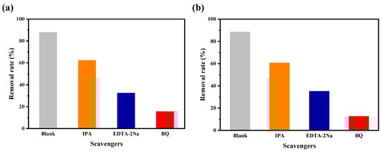 The effect of different radical scavengers on CIP removal by compounds 1 (a) and 3 (b).
