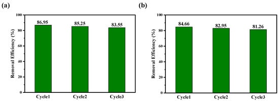 Removal rate of CIP by compounds 1 (a) and 3 (b) in three cycle experiments.
