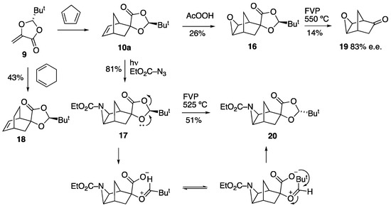 3.3. Preparation and Reactions of Diels–Alder Adducts of (2R)-2-t-Butyl-5-methylene-1,3-dioxolan-4-one 9