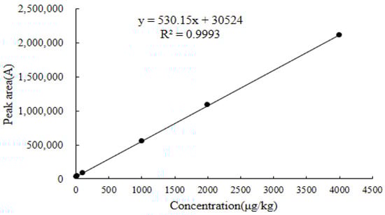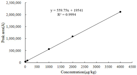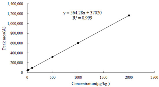 | Matrix | Linear Regression Equation | Determination Coefficient (R2) | Linearity Range (µg/kg) | LOD (µg/kg) | LOQ (µg/kg) | CCα | CCβ |
